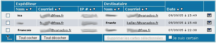 Affiche les e-cartes envoyées patr les utilisateurs.